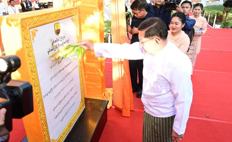 ပြည်ထောင်စုသမ္မတမြန်မာနိုင်ငံတော် ယာယီသမ္မတ နိုင်ငံတော်လုံခြုံရေးနှင့် အေးချမ်းသာယာရေးကော်မရှင်ဥက္ကဋ္ဌ ဗိုလ်ချုပ်မှူးကြီး မင်းအောင်လှိုင် စွမ်းအင်ဝန်ကြီးဌာန နှစ် (၄၀)ပြည့် ပတ္တမြားရတု၊ သန်လျင်ရေနံချက်စက်ရုံရာပြည့်နှင့် စွမ်းအင်ပြတိုက်ဖွင့်ပွဲအခမ်းအနားသို့ တက်ရောက်ချီးမြှင့်