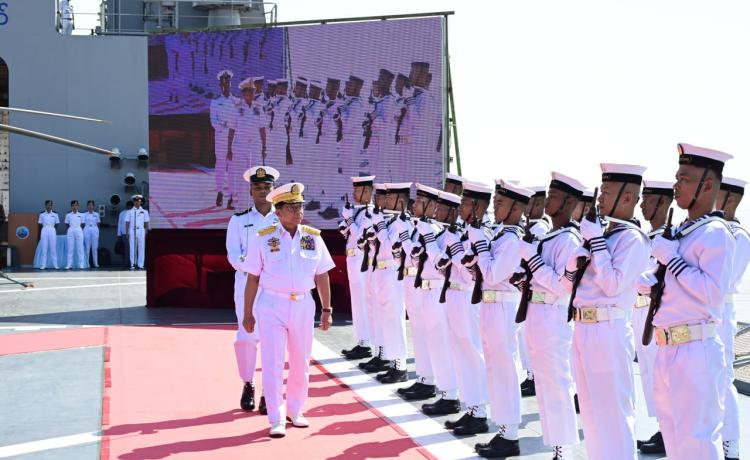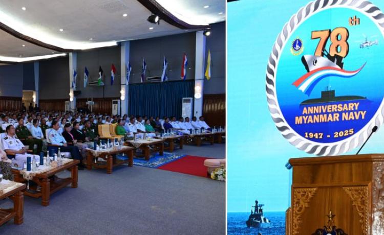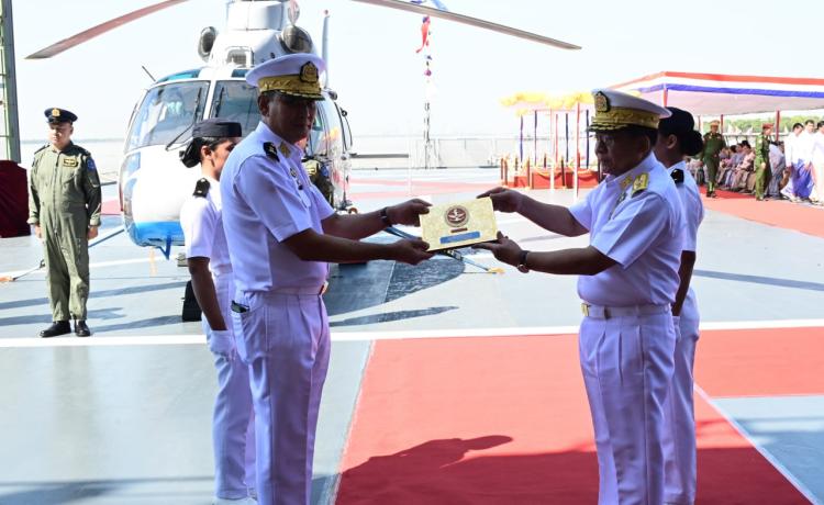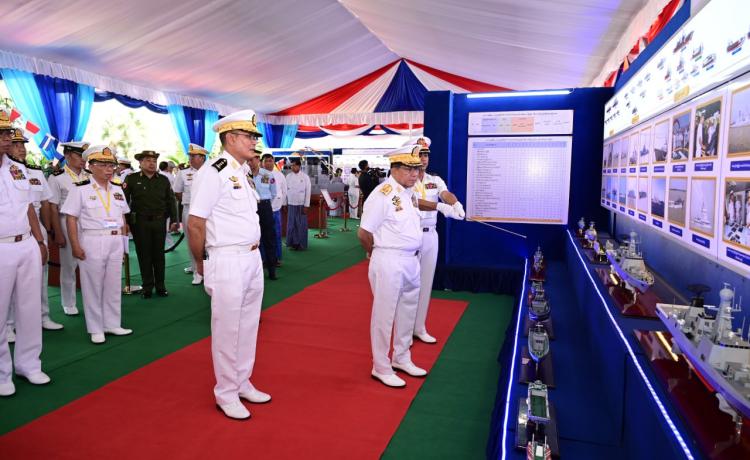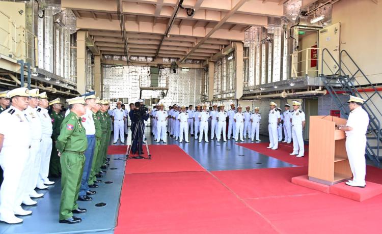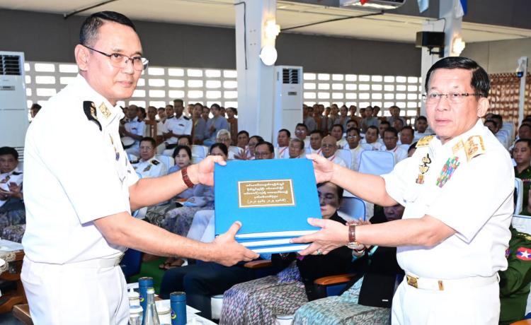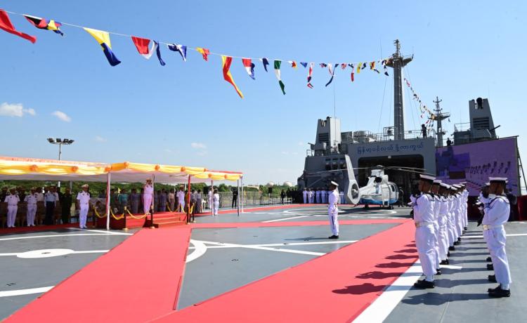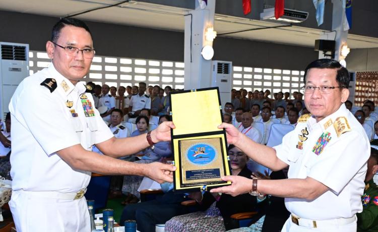 နိုင်ငံတော်လုံခြုံရေးနှင့် အေးချမ်းသာယာရေးကော်မရှင်ဥက္ကဌ တပ်မတော်ကာကွယ်ရေးဦးစီးချုပ် ဗိုလ်ချုပ်မှူးကြီး မင်းအောင်လှိုင် တပ်မတော်(ရေ)ဖွဲ့စည်းတည်ထောင်မှု(၇၈)နှစ်မြောက်နှစ်ပတ်လည်နေ့ အခမ်းအနားသို့ တက်ရောက်ချီးမြှင့်