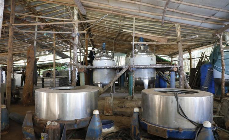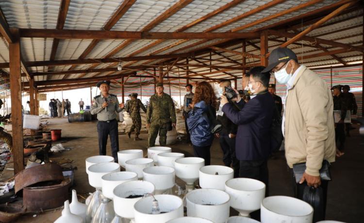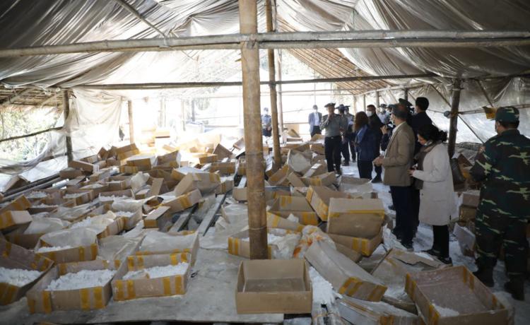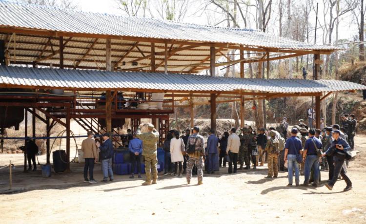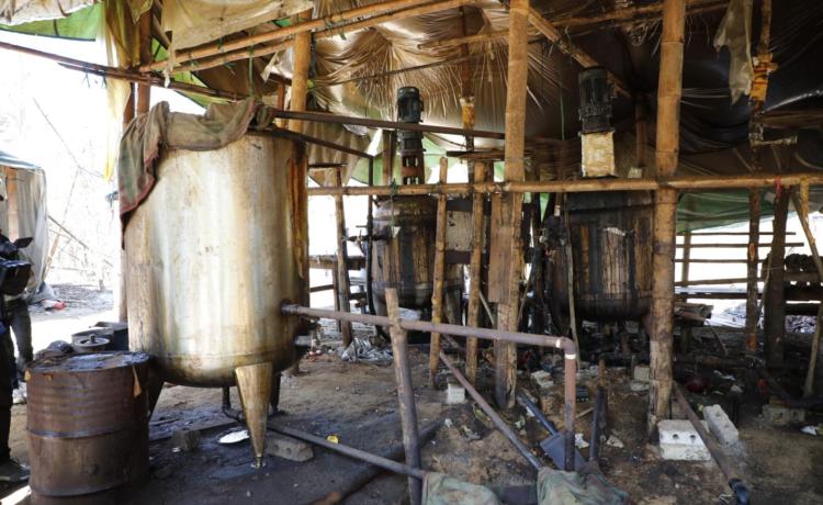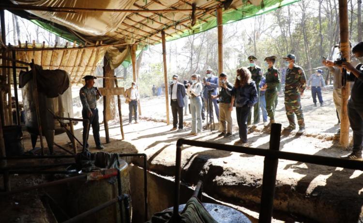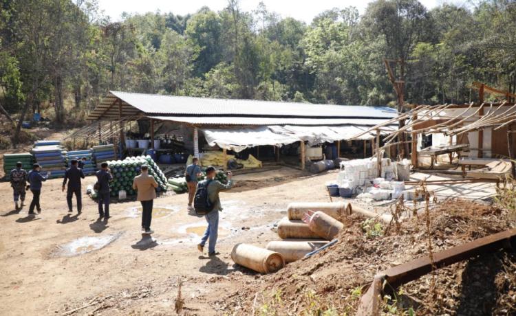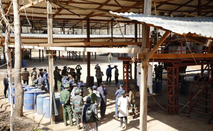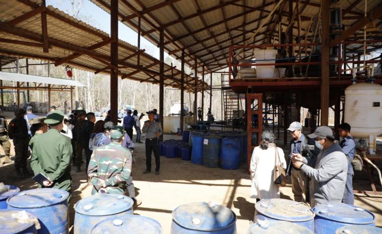 ဖော်ထုတ်ဖမ်းဆီးရမိသည့် မူးယစ်ဆေးဝါးချက်လုပ်သည့်နေရာများသို့သွားရောက်၍ မြေပြင်ကွင်းဆင်းလိုက်လံရှင်းလင်းပြသ