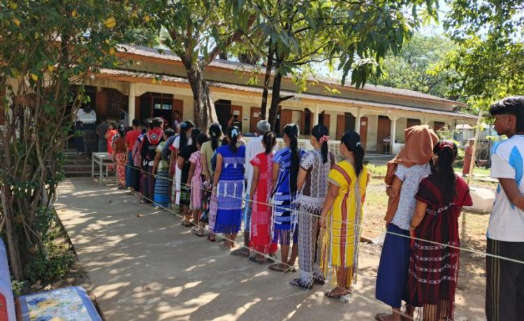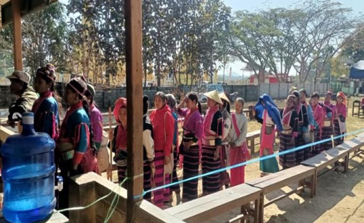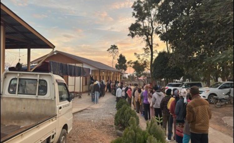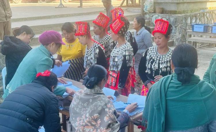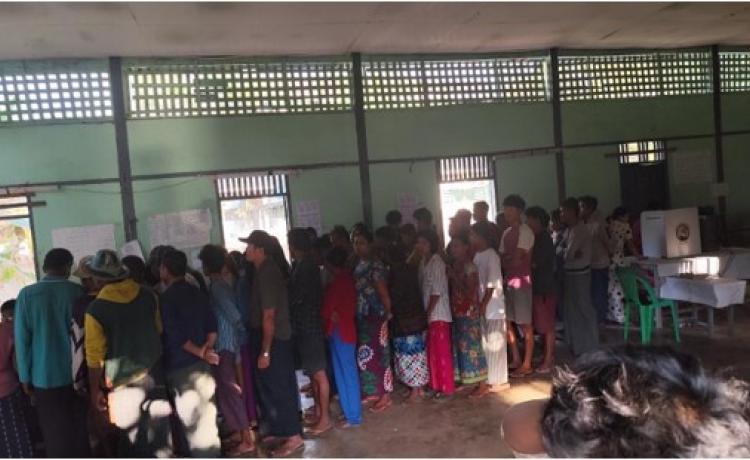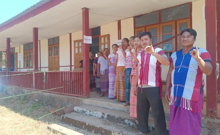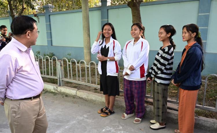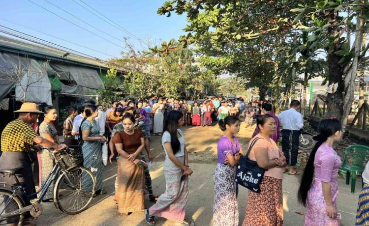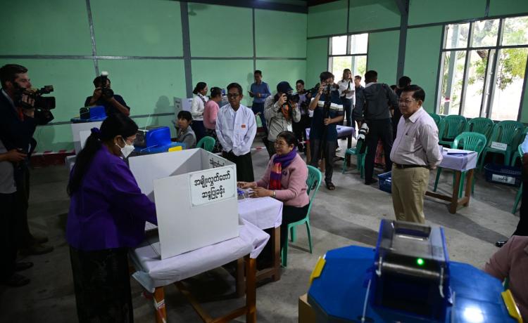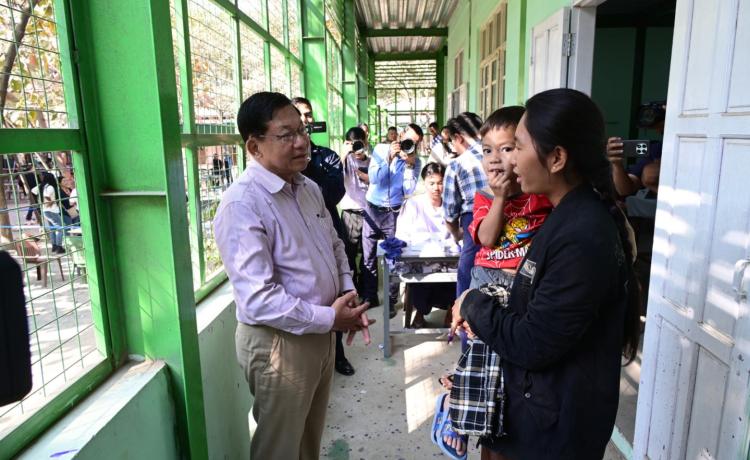 နိုင်ငံတော်ယာယီသမ္မတ နိုင်ငံတော်လုံခြုံရေးနှင့် အေးချမ်းသာယာရေးကော်မရှင်ဥက္ကဋ္ဌ ဗိုလ်ချုပ်မှူးကြီး မင်းအောင်လှိုင် ပြည်ထောင်စုသမ္မတမြန်မာနိုင်ငံတော် ၂၀၂၅ ခုနှစ် ပါတီစုံဒီမိုကရေစီ အထွေထွေရွေးကောက်ပွဲ အပိုင်း(၃)တွင် ပါဝင်ဆန္ဒမဲပေးနေကြသည့် မဲဆန္ဒရှင်ပြည်သူများအား မဲရုံများအလိုက် လိုက်လံကြည့်ရှုအားပေး