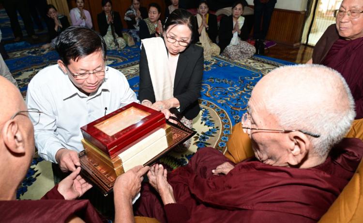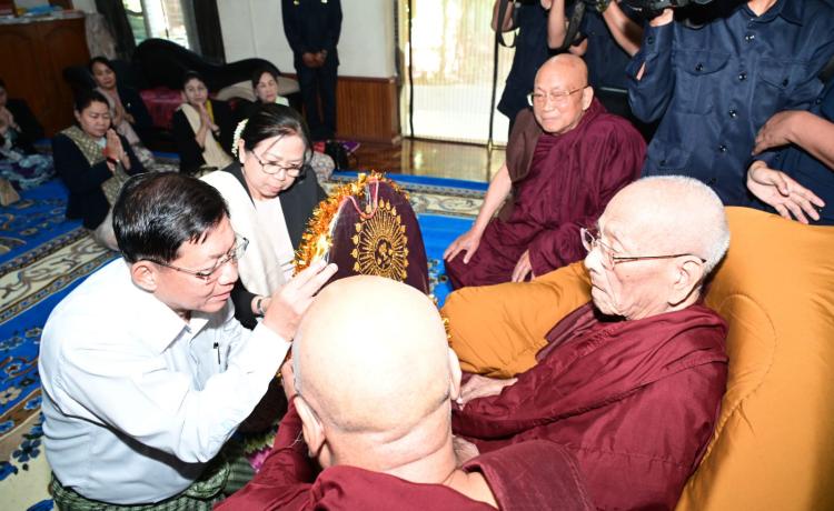 ပြည်ထောင်စုသမ္မတမြန်မာနိုင်ငံတော် ယာယီသမ္မတ နိုင်ငံတော်လုံခြုံရေးနှင့် အေးချမ်းသာယာရေးကော်မရှင် ဥက္ကဋ္ဌ ဗိုလ်ချုပ်မှူးကြီး မင်းအောင်လှိုင် နှင့် ဇနီး ဒေါ်ကြူကြူလှ မန္တလေးမြို၊ မဟာဝိဇိတာရုံကျောင်းတိုက် ပဓာနနာယကဆရာတော်ကြီး၏ ကျန်းမာရေးအခြေအနေများအား သွားရောက် မေးမြန်းလျှောက်ထားပြီး လိုအပ်သည်များ ဖြည့်ဆည်းဆောင်ရွက်
