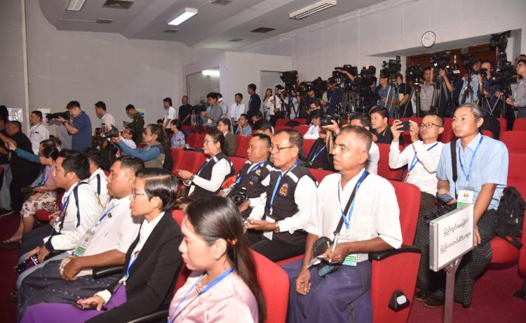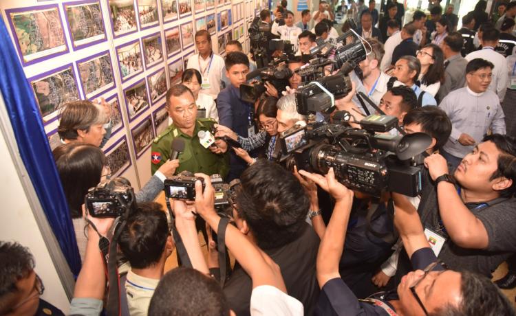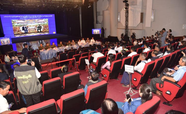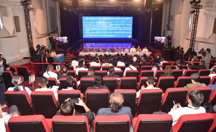 ပြည်ထောင်စုသမ္မတ မြန်မာနိုင်ငံတော်အစိုးရ၏ အမျိုးသားအဆင့်အွန်လိုင်း လိမ်လည်မှု အမြစ်ပြတ်နှိမ်နှင်းရေး လုပ်ငန်းစဉ်များနှင့်ပတ်သက်၍ သတင်းစာရှင်းလင်းပွဲကို ယနေ့နံနက် ပိုင်းတွင် ရန်ကုန်တိုင်းဒသကြီး၊ ကမာရွတ်မြို့နယ် ပြည်လမ်းရှိ မြန်မာ့အသံနှင့် ရုပ်မြင်သံကြား၊ Studio A ၌ ကျင်းပပြုလုပ်ရာ အမျိုးသားကာကွယ်ရေးနှင့် လုံခြုံရေးကောင်စီသတင်းထုတ်ပြန် ရေးအဖွဲ့ အဖွဲ့ခေါင်းဆောင် ပြန်ကြားရေးဝန်ကြီးဌာန ဒုတိယဝန်ကြီး ဗိုလ်ချုပ်ဇော်မင်းထွန်းနှင့် တာဝန်ရှိသူများက သတင်းမီဒီယာများ၏ သိရှိလိုသည့် မေးမြန်းမှုများကို ပြန်လည်ဖြေကြား ကြသည်။