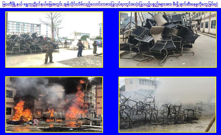 မြန်မာနိုင်ငံအစိုးရအနေဖြင့် အွန်လိုင်းလိမ်လည်လောင်းကစားမှုများ အများဆုံး အခြေချလုပ်ကိုင်လျက်ရှိကြသည့် ရွှေကုက္ကိုလ်နယ်မြေနှင့် KK Park နယ်မြေများရှိ တရားမဝင်အဆောက်အအုံများအတွင်း ဝင်ရောက်ရှင်းလင်းခြင်း၊ အွန်လိုင်းလိမ်လည် လောင်းကစားမှု လုပ်ငန်းစဉ်များတွင် အသုံးပြုခဲ့သည့် သိမ်းဆည်းရမိပစ္စည်းများနှင့် တရားမဝင် အဆောက်အအုံများအား စနစ်တကျဖြိုချဖျက်ဆီးခြင်းများကို လုံခြုံရေး တပ်ဖွဲ့ဝင်များ၊ အုပ်ချုပ်ရေးအဖွဲ့အစည်းများနှင့် ဒေသတွင်းတာဝန်ရှိသူများအပါအ