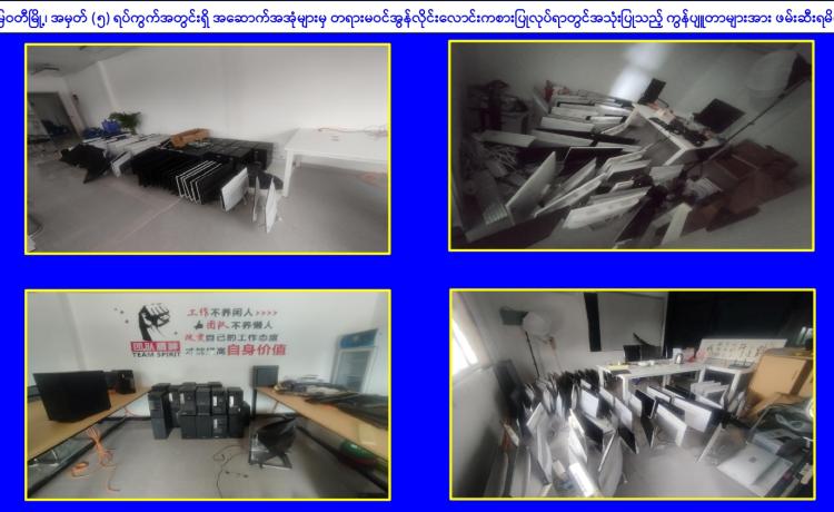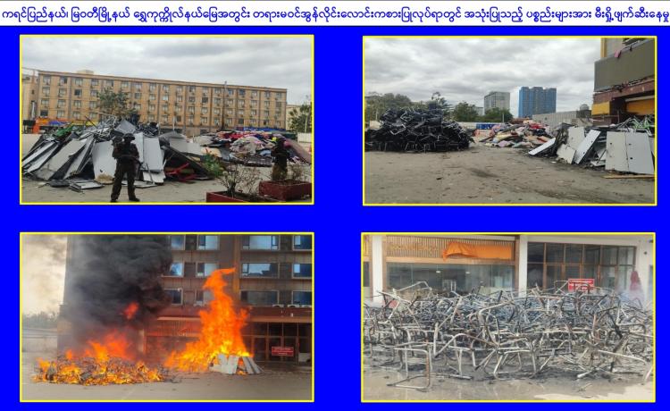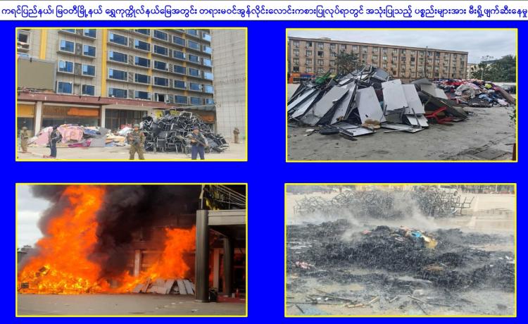 မြန်မာနိုင်ငံအစိုးရအနေဖြင့် အွန်လိုင်းလိမ်လည်လောင်းကစားမှုများ အများဆုံး အခြေချလုပ်ကိုင်လျက်ရှိကြသည့် ရွှေကုက္ကိုလ်နယ်မြေနှင့် KK Park နယ်မြေများရှိ တရားမဝင်အဆောက်အအုံများအတွင်း ဝင်ရောက်ရှင်းလင်းခြင်း၊ အွန်လိုင်းလိမ်လည် လောင်းကစားမှု လုပ်ငန်းစဉ်များတွင် အသုံးပြုခဲ့သည့် သိမ်းဆည်းရမိပစ္စည်းများနှင့် တရားမဝင် အဆောက်အအုံများအား စနစ်တကျဖြိုချဖျက်ဆီးခြင်းများကို လုံခြုံရေး တပ်ဖွဲ့ဝင်များ၊ အုပ်ချုပ်ရေးအဖွဲ့အစည်းများနှင့် ဒေသတွင်းတာဝန်ရှိသူများအပါအ