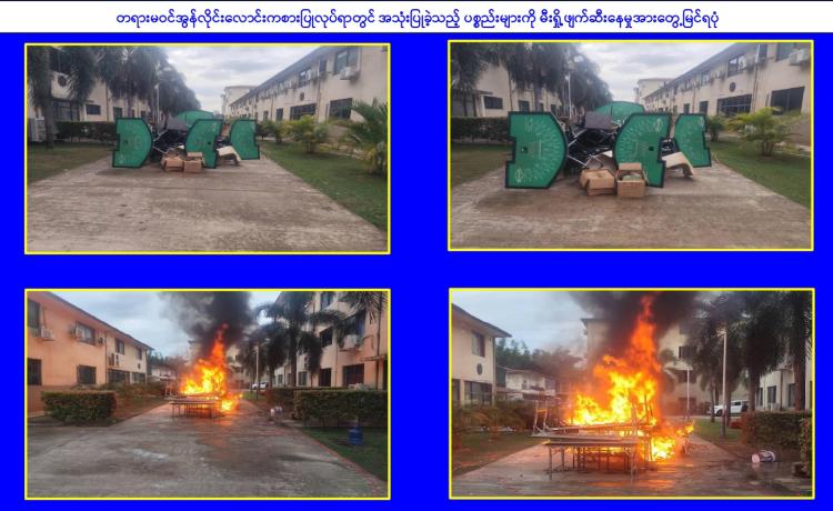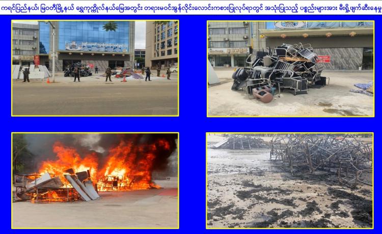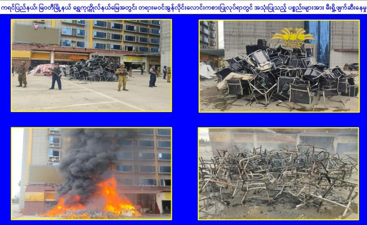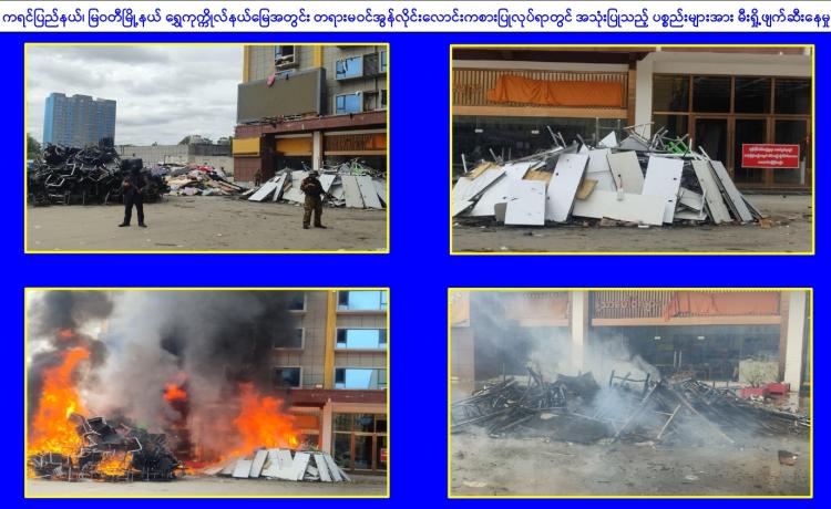 တနင်္သာရီတိုင်းဒေသကြီး၊ ရေဖြူမြို့အနောက်ခြမ်းရှိ ဌာနဆိုင်ရာ အဆောက် အအုံများ၊ ဝန်ထမ်းအိမ်ရာများနှင့် ဒေသခံပြည်သူများ ပိုင်ဆိုင်သည့် နေအိမ် အဆောက်အအုံများအား ယနေ့တွင် PDF အမည်ခံအကြမ်းဖက်သောင်းကျန်း သူများက လက်နက်ကြီး/ လက်နက်ငယ်များဖြင့် ပစ်ခတ်ပြီး မီးရှို့ဖျက်ဆီးသွားခဲ့ကြောင်း သိရှိရသည်။