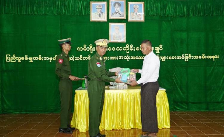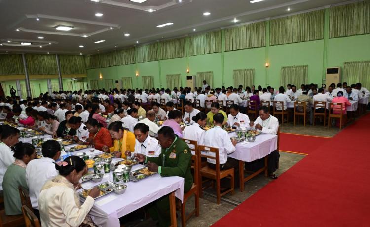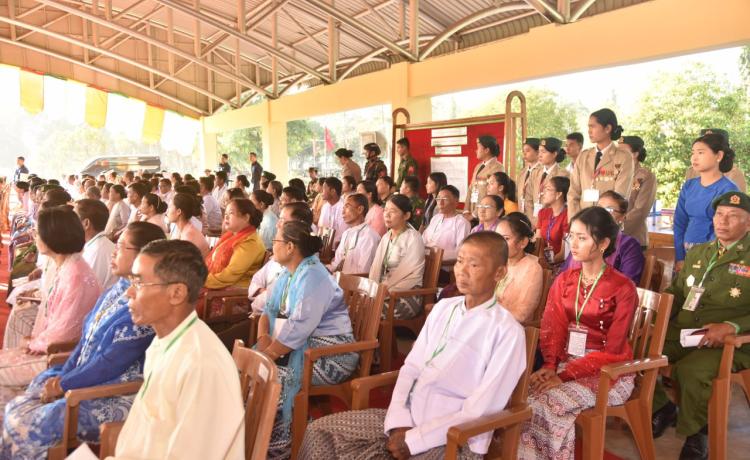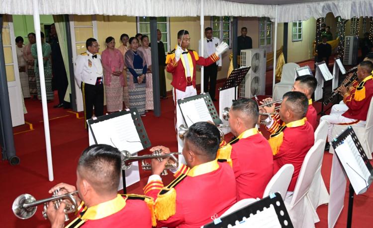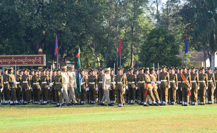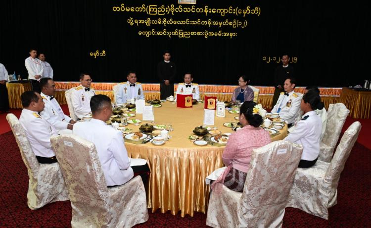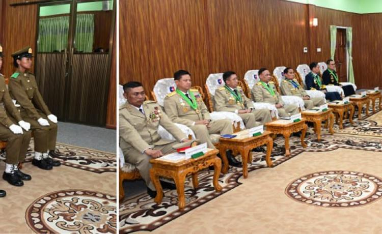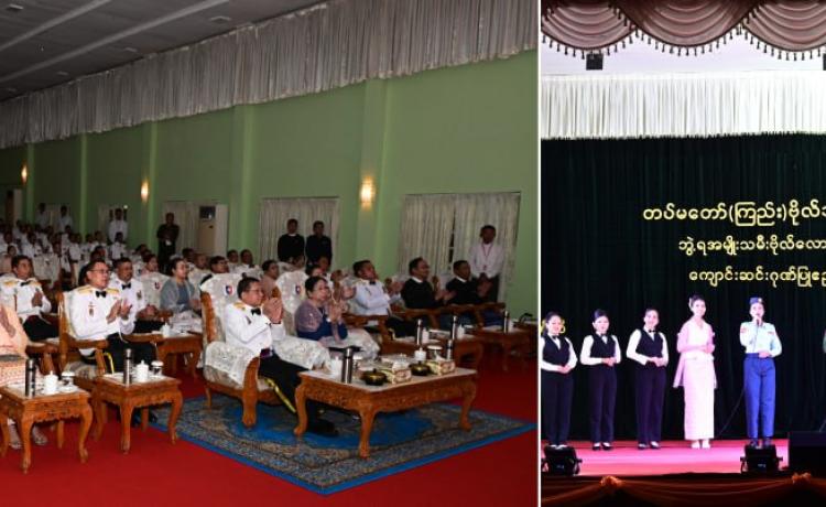 တပ်မတော်(ကြည်း)ဗိုလ်သင်တန်းကျောင်း(မှော်ဘီ)၊ ဘွဲ့ရအမျိုးသမီး ဗိုလ်လောင်း သင်တန်းအမှတ်စဉ်(၁၂) သင်တန်းဆင်းဂုဏ်ပြုညစာစားပွဲအခမ်းအနားကို ယနေ့ညနေ ပိုင်းတွင် ရန်ကုန်မြို့၊ တပ်မတော်(ကြည်း) ဗိုလ်သင်တန်းကျောင်း(မှော်ဘီ)ရှိ ပြည်ထောင်စု ခန်းမ၌ကျင်းပရာ နိုင်ငံတော်လုံခြုံရေးနှင့် အေးချမ်းသာယာရေးကော်မရှင် ဥက္ကဋ္ဌ တပ်မတော်ကာကွယ်ရေးဦးစီးချုပ် ဗိုလ်ချုပ်မှူးကြီး မင်းအောင်လှိုင် တက်ရောက်ချီးမြှင့် သည်။