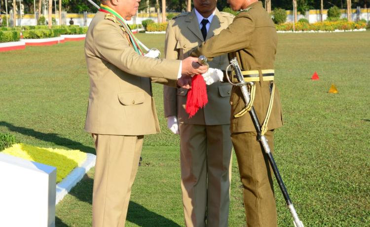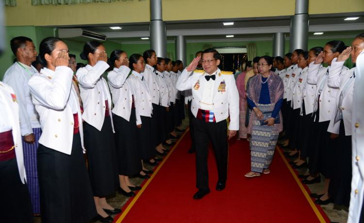 နိုင်ငံတော်လုံခြုံရေးနှင့် အေးချမ်းသာယာရေးကော်မရှင်ဥက္ကဋ္ဌ တပ်မတော်ကာကွယ်ရေးဦးစီးချုပ် ဗိုလ်ချုပ်မှူးကြီး သတိုးမဟာသရေစည်သူ သတိုးသီရိသုဓမ္မ မင်းအောင်လှိုင် ဘွဲ့ရအမျိုးသမီးဗိုလ်လောင်းသင်တန်း အမှတ်စဉ်(၁၂) သင်တန်းဆင်း ဂုဏ်ပြုစစ်ရေးပြအခမ်းအနားသို့ တက်ရေ