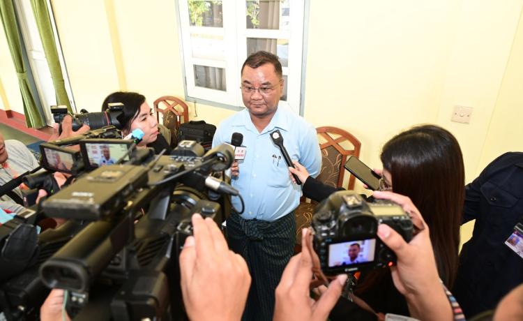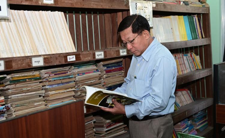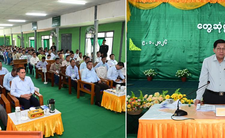ပြည်ထောင်စုသမ္မတမြန်မာနိုင်ငံတော် ယာယီသမ္မတနိုင်ငံတော်လုံခြုံရေးနှင့် အေးချမ်းသာယာရေးကော်မရှင် ဥက္ကဋ္ဌ ဗိုလ်ချုပ်မှူးကြီး မင်းအောင်လှိုင် သာပေါင်းမြို့ရှိ မြို့နယ်အဆင့်ဌာနဆိုင်ရာတာဝန်ရှိသူများ၊ မြို့မိမြို့ဖများနှင့်တွေ့ဆုံ၍ ဒေသဖွံ့ဖြိုးတိုးတက်ရေးဆိုင်ရာများဆွေးနွေး နေပြည်တော်၊ ဇန်နဝါရီ - ၉