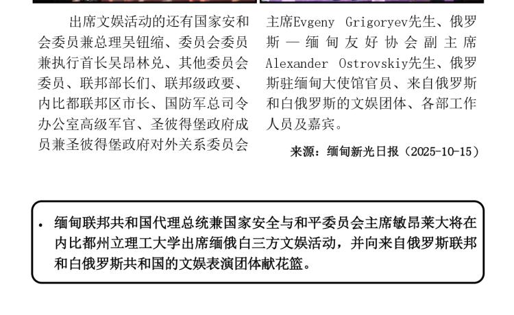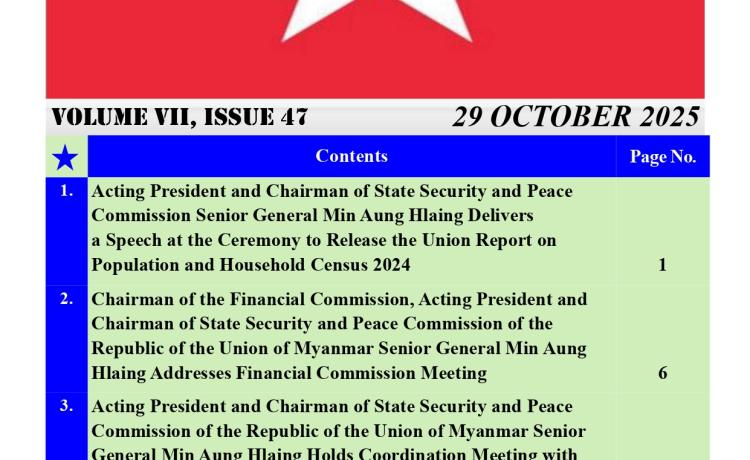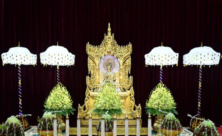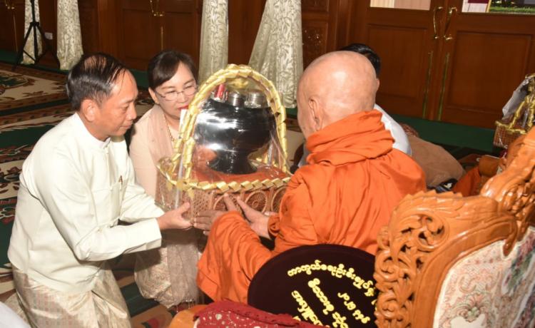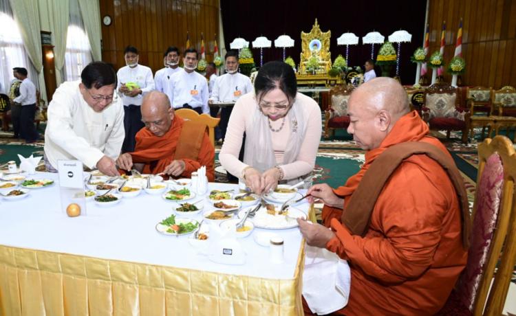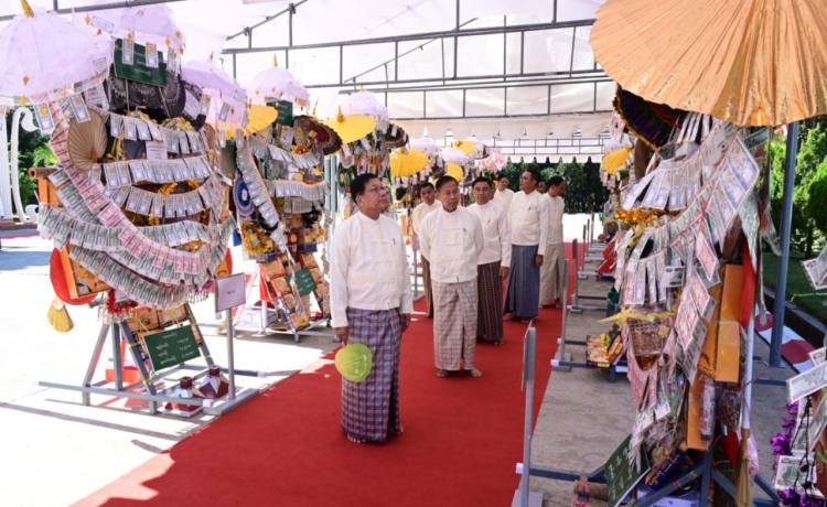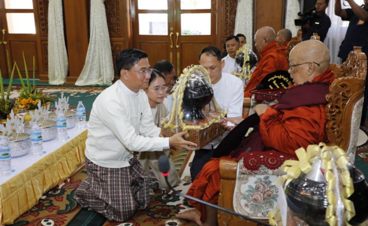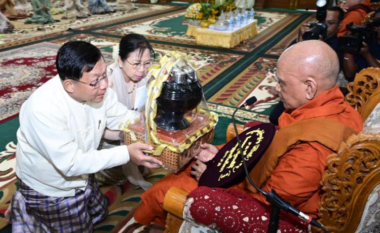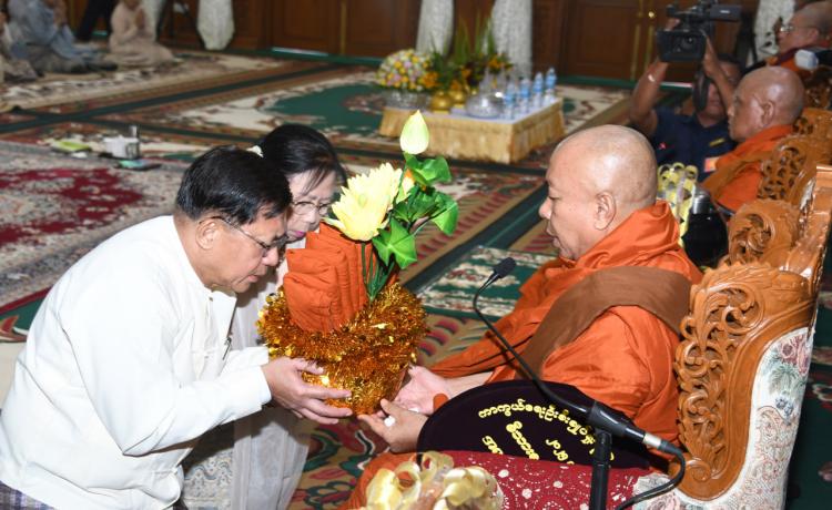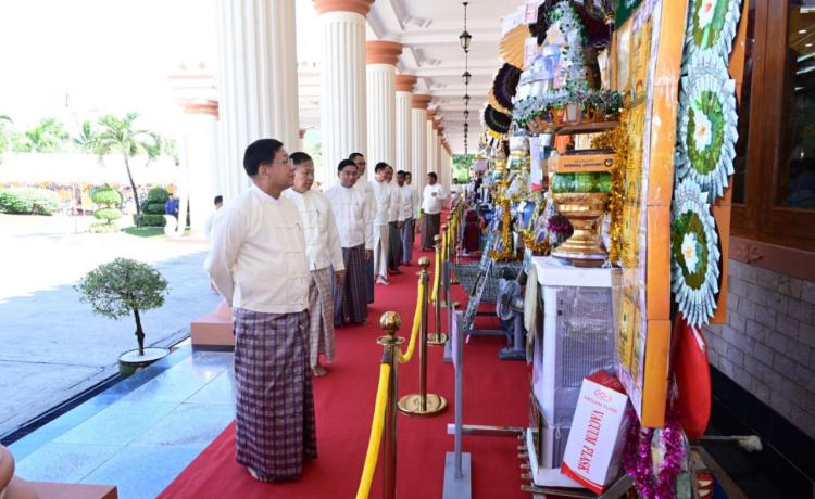 ပြည်ထောင်စုသမ္မတမြန်မာနိုင်ငံတော်၊ အမျိုးသားကာကွယ်ရေးနှင့်လုံခြုံရေး ကောင်စီ ၂၀၂၅ ခုနှစ် ကထိန်သင်္ကန်းဆက်ကပ်လှူဒါန်းပွဲ အခမ်းအနားကို ယနေ့နံနက် ပိုင်းတွင် ပြည်ထောင်စုနယ်မြေနေပြည်တော်၊ ဒက္ခိဏသီရိမြို့နယ်၊ မာရဝိဇယဗုဒ္ဓ ဥယျာဉ်ဝတ္ထုကံတော်အတွင်းရှိ အဂ္ဂါဓိပတိသာသနာ့ဗိမာန်တော်ကြီး၌ ဆင်ယင် ကျင်းပရာ ပြည်ထောင်စုသမ္မတမြန်မာနိုင်ငံတော်ယာယီသမ္မတ နိုင်ငံတော်လုံခြုံရေးနှင့် အေးချမ်းသာယာရေးကော်မရှင်ဥက္ကဋ္ဌ ဗိုလ်ချုပ် မှူးကြီး မင်းအောင်လှိုင် နှင့် ဇနီး ဒေါ်ကြူကြူလှတို့ တက်ရောက်၍ ကထိန်လျာ သင်္ကန်းနှင့် ကထိန်လှူဖွယ်ပစ္စည်းများ ဆက်ကပ်လှူဒါန်းသည်။