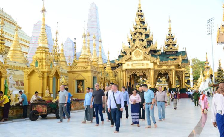 တတိယအကြိမ် မြန်မာ-ရုရှား ပူးတွဲအကြမ်းဖက်မှုတိုက်ဖျက်ရေးကော်မတီ အစည်းအဝေးသို့ တက်ရောက်ခဲ့သည့် ရုရှားတပ်မတော်ကြည်းတပ်ဖွဲ့၏ ငြိမ်းချမ်းရေးထိန်းသိမ်းမှုဆိုင်ရာ ဒုတိယကြည်းတပ် ဦးစီးချုပ် Colonel General Aleksandr Anatolyevich Matovnikov ဦးဆောင်သော ကိုယ်စားလှယ်အဖွဲ့ဝင်များ မြန်မာနိုင်ငံရှိ အထင်ကရနေရာများအား သွားရောက်လေ့လာ