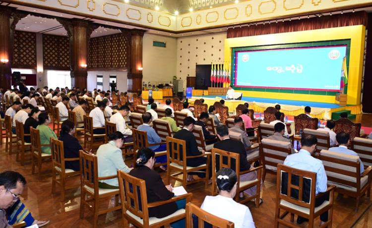 ပြည်ထောင်စုသမ္မတမြန်မာနိုင်ငံတော် ယာယီသမ္မတ နိုင်ငံတော်လုံခြုံရေးနှင့် အေးချမ်းသာယာရေးကော်မရှင်ဥက္ကဋ္ဌ ရန်ကုန်တိုင်းဒေသကြီးအစိုးရအဖွဲ့ဝင်များနှင့် တိုင်းဒေသကြီးနှင့် ခရိုင်အဆင့် ဌာနဆိုင်ရာတာဝန်ရှိသူများအားတွေ့ဆုံ၍ ဒေသဖွံ့ဖြိုးတိုးတက်ရေးဆိုင်ရာများ ဆွေးနွေးပြောကြား