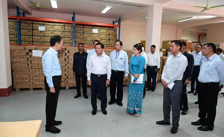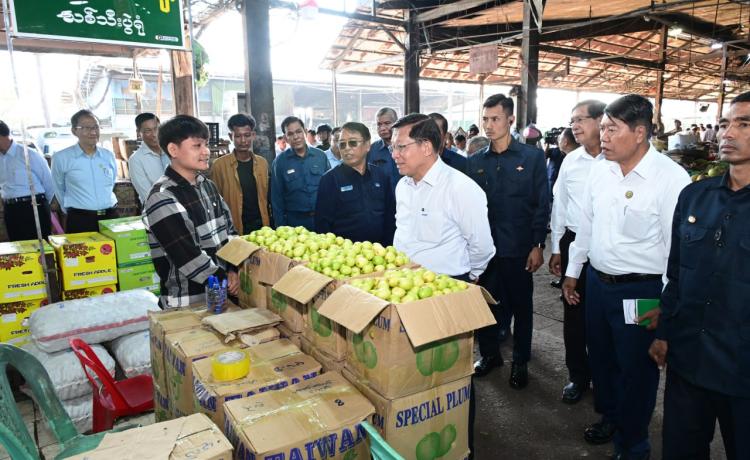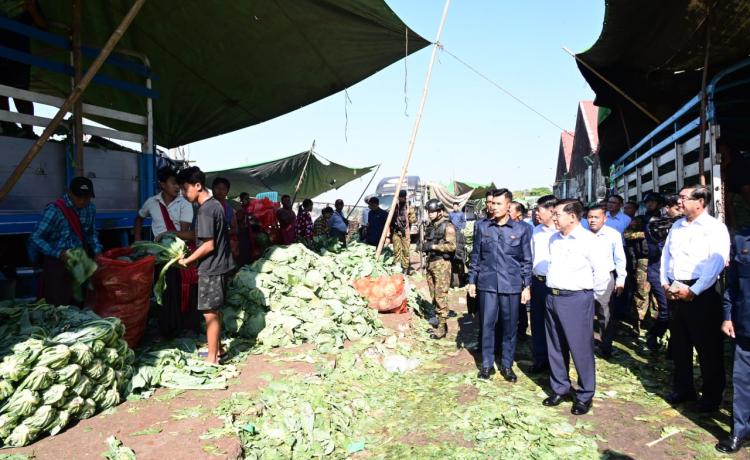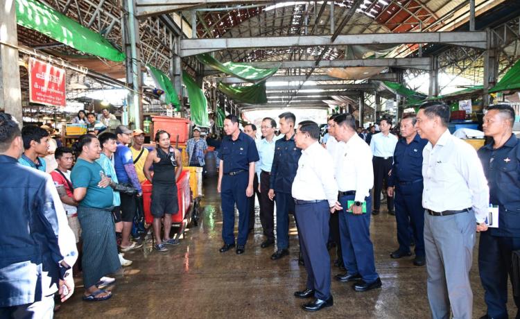 ပြည်ထောင်စုသမ္မတမြန်မာနိုင်ငံတော် ယာယီသမ္မတ နိုင်ငံတော်လုံခြုံရေးနှင့် အေးချမ်းသာယာရေးကော်မရှင်ဥက္ကဋ္ဌ ဗိုလ်ချုပ်မှူးကြီး မင်းအောင်လှိုင် ရန်ကုန်မြို့အတွင်း ရေစီးရေလာကောင်းမွန်ရေးနှင့် ဈေးများစနစ်တကျဖြစ်စေရေး ဆောင်ရွက်ထားရှိမှုအခြေအနေများအား လှည့်လည်ကြည့်ရှုစစ်ဆေး