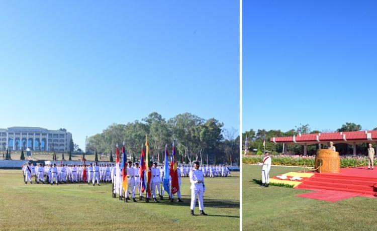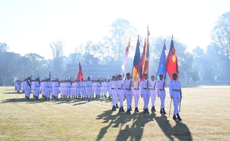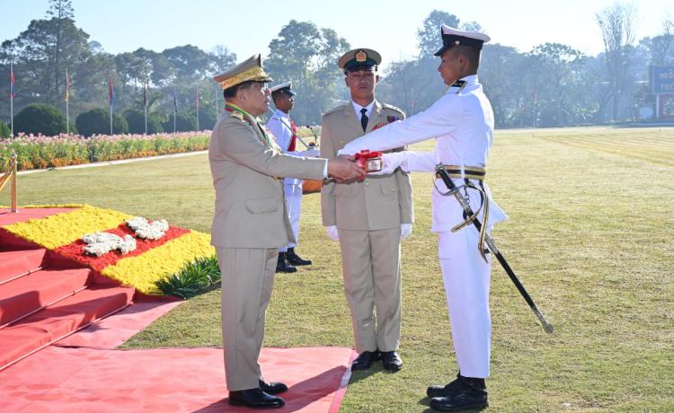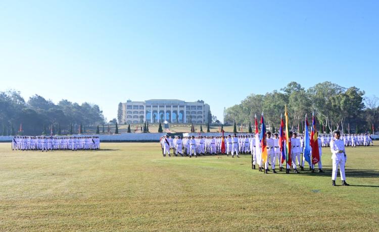 နိုင်ငံတော်လုံခြုံရေးနှင့် အေးချမ်းသာယာရေးကော်မရှင်ဥက္ကဋ္ဌ တပ်မတော်ကာကွယ်ရေးဦးစီးချုပ် ဗိုလ်ချုပ်မှူးကြီး သတိုးမဟာသရေစည်သူ သတိုးသီရိသုဓမ္မ မင်းအောင်လှိုင် တပ်မတော်နည်းပညာတက္ကသိုလ် ဗိုလ်လောင်းသင်တန်းအမှတ်စဉ်(၂၇) သင်တန်းဆင်းဂုဏ်ပြုစစ်ရေးပြ အခမ်းအနားသို့ တက်ရောက် မိန့်ခွန်းပြောကြား