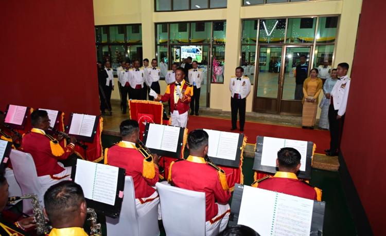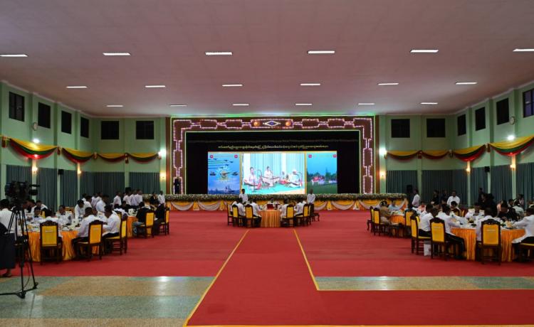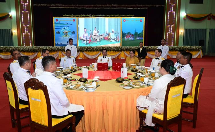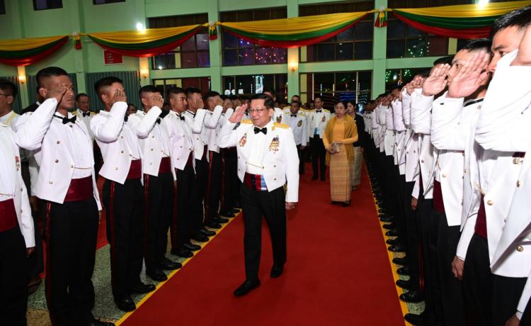 တပ်မတော်နည်းပညာတက္ကသိုလ် ဗိုလ်လောင်းသင်တန်းအမှတ်စဉ်(၂၇) သင်တန်း ဆင်း ဂုဏ်ပြုညစာစားပွဲအခမ်းအနားကို ယနေ့ညနေပိုင်းတွင် ပြင်ဦးလွင်မြို့၊ တပ်မတော် နည်းပညာတက္ကသိုလ်၊ ဗိုလ်လောင်းစားရိပ်သာ၌ ကျင်းပပြုလုပ်ရာ နိုင်ငံတော်လုံခြုံရေးနှင့် အေးချမ်းသာယာရေးကော်မရှင် ဥက္ကဋ္ဌ တပ်မတော်ကာကွယ်ရေးဦးစီးချုပ် ဗိုလ်ချုပ်မှူးကြီး မင်းအောင်လှိုင် တက်ရောက်ချီးမြှင့်သည်။