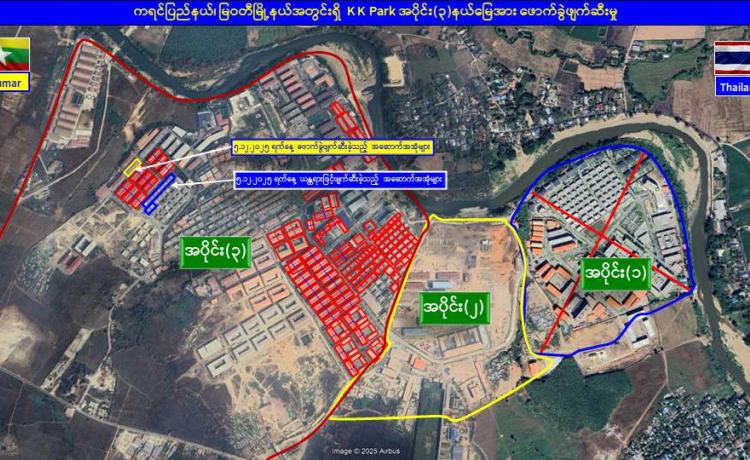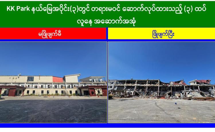 KK Park နယ်မြေအတွင်းရှိ အွန်လိုင်းလိမ်လည်မှုနှင့် လောင်းကစားမှုများကျူးလွန်ရာတွင် အသုံးပြုသည့် အဆောက်အအုံများ ဆက်လက်ဖြိုချဖျက်ဆီး၊ မြဝတီမြို့နှင့် ရွှေကုက္ကိုလ်မြို့တို့၌ တရားမဝင်အွန်လိုင်းလောင်းကစားမှုကျူးလွန်သူများထပ်မံဖမ်းဆီးရမိ