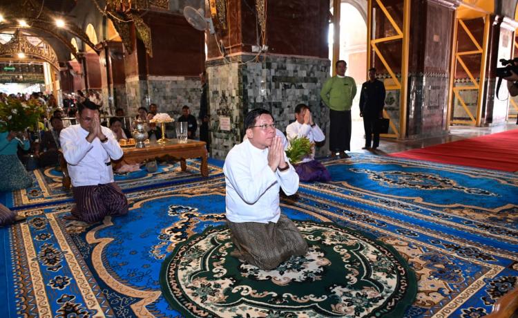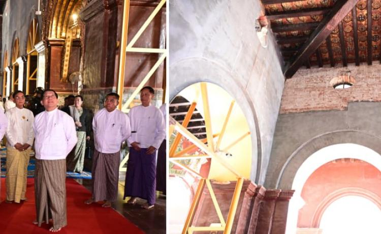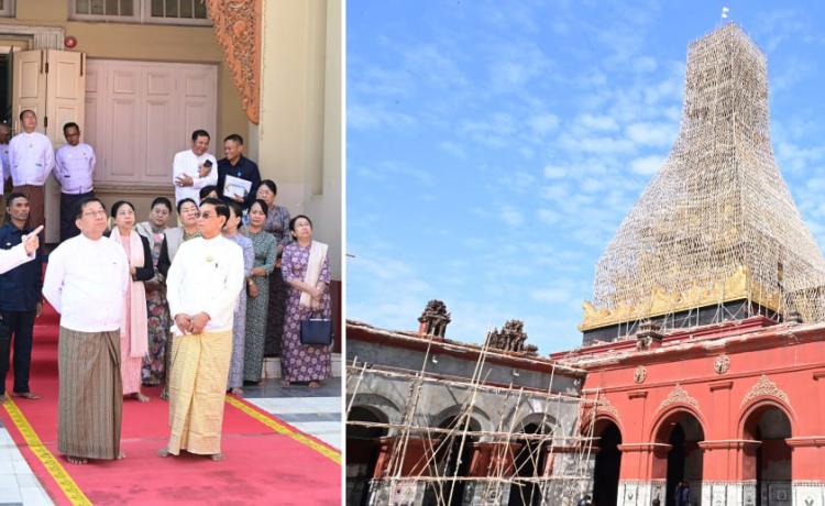 ပြည်ထောင်စုသမ္မတမြန်မာနိုင်ငံတော် ယာယီသမ္မတ နိုင်ငံတော်လုံခြုံရေးနှင့် အေချမ်းသာယာရေးကော်မရှင်ဥက္ကဋ္ဌ ဗိုလ်ချုပ်မှူးကြီး မင်းအောင်လှိုင် မန္တလေးမြို့ မဟာမြတ်မုနိဘုရားကြီးသို့ သွားရောက်ဖူးမြော်ကြည်ညို၊ ငလျင်ဒဏ်ကြောင့် ထိခိုက်ပျက်စီးခဲ့ရမှုများအား ပြန်လည်ပြုပြင်မွမ်းမံနေမှုများအား ကြည့်ရှုစစ်ဆေး နေပြည်တော်၊ ဒီဇင်ဘာ - ၄