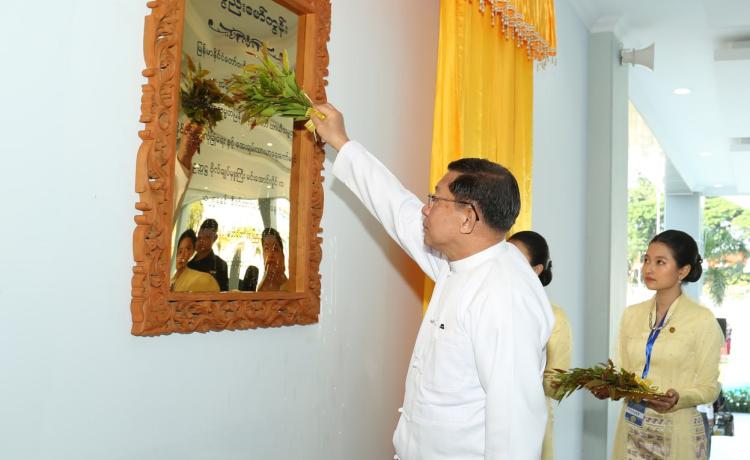 ပြည်ထောင်စုသမ္မတမြန်မာနိုင်ငံတော် မြန်မာနိုင်ငံတော်ဗဟိုဘဏ် (မန္တလေး ဘဏ်ခွဲ) ရုံးအဆောက်အဦသစ်ဖွင့်ပွဲအခမ်းအနားကို ယနေ့နံနက်ပိုင်းတွင် ကျင်းပပြု လုပ်ရာ ပြည်ထောင်စုသမ္မတမြန်မာနိုင်ငံတော် ယာယီသမ္မတ နိုင်ငံတော်လုံခြုံရေးနှင့် အေးချမ်းသာယာရေး ကော်မရှင်ဥက္ကဋ္ဌ ဗိုလ်ချုပ်မှူးကြီး မင်းအောင်လှိုင် တက်ရောက် ချီးမြှင့်ဖွင့်လှစ်ပေးသည်။