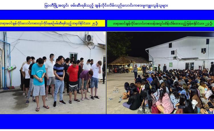 KK Park နယ်မြေအတွင်းရှိ အွန်လိုင်းလိမ်လည်မှုနှင့် လောင်းကစားမှုများကျူးလွန်ရာတွင် အသုံးပြုသည့် အဆောက်အအုံ ၂၉၇ လုံး ဖြိုချဖျက်ဆီးပြီးစီး၊ မြဝတီမြို့ အမှတ်(၃)ရပ်ကွက်တွင် တရားမဝင်အွန်လိုင်းလောင်းကစားမှုကျူးလွန်သူ ၂၄၈ ဦးထပ်မံဖမ်းဆီးရမိ