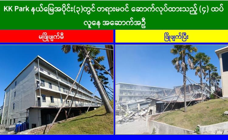 KK Park နယ်မြေအတွင်း တရားမဝင်အဆောက်အအုံများအား ဆက်လက်ဖြိုချဖျက်ဆီး၊ ရွှေကုက္ကိုလ်နယ်မြေတို့အတွင်း online လိမ်လည်လောင်းကစားမှုများနှင့် ဒုစရိုက်မှုများကျူးလွန်နေကြသူများအား အဖွဲ့စုံပါဝင်သည့်ပူးပေါင်းစစ်ဆေးရေးအဖွဲ့များဖြင့် ဆက်လက်ရှင်းလင်းဆောင်ရွက်