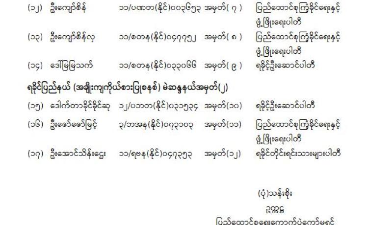 ပြည်ထောင်စုရွေးကောက်ပွဲကော်မရှင်နှင့် နိုင်ငံရေးပါတီများ တွေ့ဆုံပွဲကို ယနေ့ နံနက် ၉ နာရီတွင် ပြည်ထောင်စုရွေးကောက်ပွဲကော်မရှင်ရုံး၊ အစည်းအဝေးခန်းမ၌ ကျင်းပသည်။
