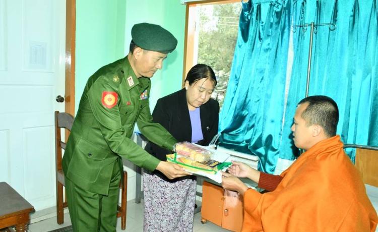 ရှမ်းပြည်နယ်(တောင်ပိုင်း)၊ တောင်ကြီးမြို့၊ စဝ်စံထွန်းရပ်ကွက်ရှိ ဇီဝိတဒါန သံဃာ့ဆေးရုံ၌ ဆေးကုသမှုခံယူလျက်ရှိသော သံဃာတော်များအား ယနေ့နံနက်ပိုင်း တွင် အရှေ့ပိုင်းတိုင်းစစ်ဌာနချုပ် တိုင်းမှူး ဗိုလ်မှူးချုပ် ကျော်နိုင်ဦးနှင့် တာဝန်ရှိသူ များက သွားရောက်ကြည့်ရှု၍ ကျန်းမာရေးတိုးတက်ကောင်းမွန်မှုနှင့် ဆေးဝါးကုသမှု အခြေအနေများကို မေးမြန်းလျှောက်ထားပြီး လှူဖွယ်ပစ္စည်းများနှင့် နဝကမ္မအလှူငွေ များ ဆက်ကပ်လှူဒါန်းသည်။