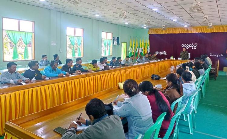 ရှမ်းပြည်နယ်(မြောက်ပိုင်း)၊ မိုင်းရယ်မြို့တွင် ၂၀၂၅ ခုနှစ်၊ ပါတီစုံဒီမိုကရေစီ အထွေထွေရွေးကောက်ပွဲ အပိုင်း(၂) အောင်မြင်စွာကျင်းပနိုင်ရေး လုပ်ငန်းညှိနှိုင်းအစည်း အဝေးကို ယနေ့နံနက်ပိုင်းတွင် အဆိုပါမြို့ရှိ အထွေထွေအုပ်ချုပ်ရေးဦးစီးဌာန အစည်း ဝေးခန်းမ၌ ပြုလုပ်ရာ အရှေ့မြောက်တိုင်းစစ်ဌာနချုပ် တိုင်မှူး ဗိုလ်မှူးချုပ် အေးမင်းဦးနှင့် ပြည်နယ်ရွေးကောက်ပွဲကော်မရှင်အဖွဲ့ခွဲ(လာရှိုး)မှ တာဝန်ရှိသူများ၊ ဌာနဆိုင်ရာတာဝန်ရှိ သူများ တက်ရောက်ကြသည်။