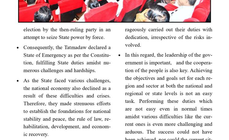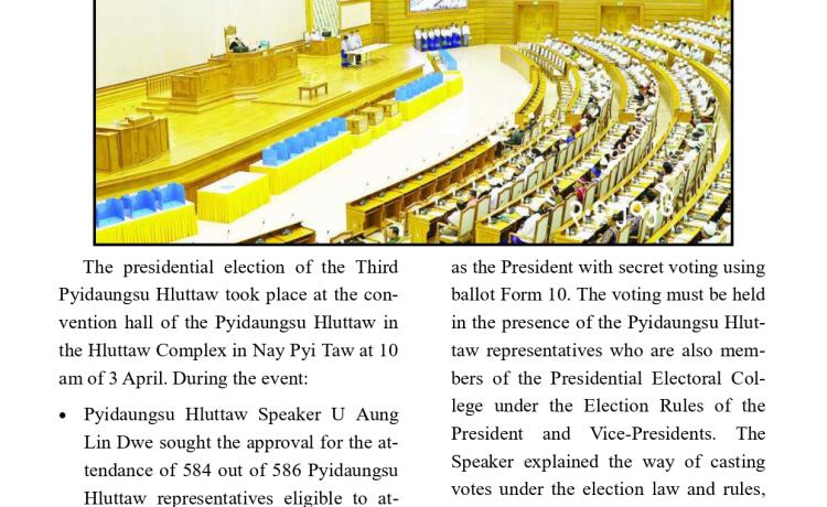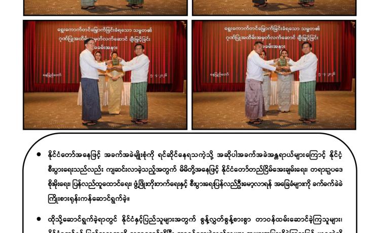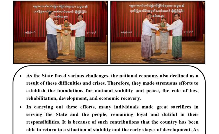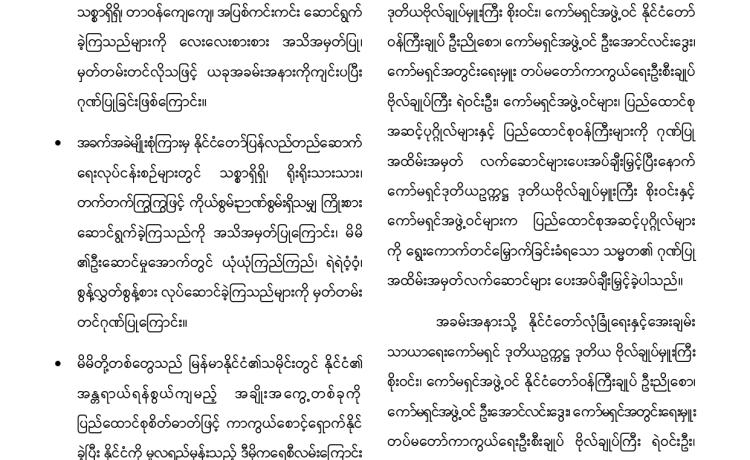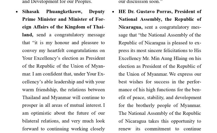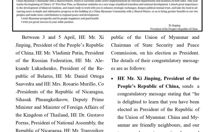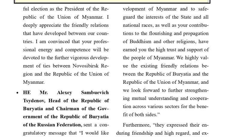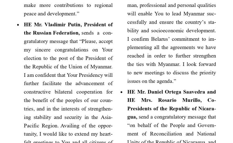 ပြည်ထောင်စုသမ္မတမြန်မာနိုင်ငံတော် သမ္မတအဖြစ် တာဝန်စတင်ထမ်းဆောင်သည့်အတွက် ကြောင့် ကျွန်ုပ်အနေဖြင့် အထူးပင် ဝမ်းမြောက်ဂုဏ်ယူပါကြောင်း ဖော်ပြအပ်ပါသည်။