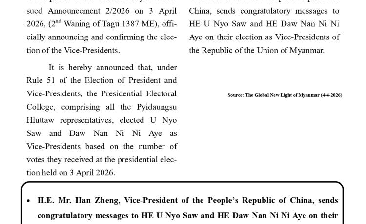 နေပြည်တော်၊ ၂၀၂၆ ခုနှစ်၊ ဧပြီ ၇