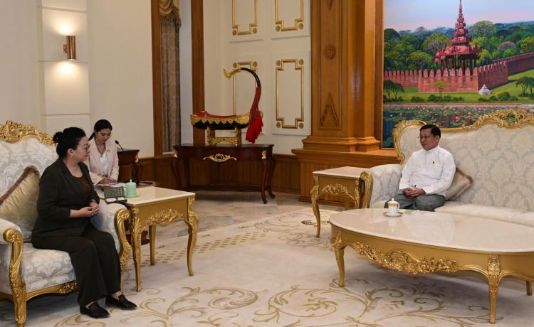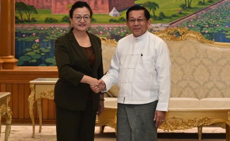 ပြည်ထောင်စုသမ္မတ မြန်မာနိုင်ငံတော်၊ ရွေးကောက်တင်မြှောက်ခြင်းခံရသော သမ္မတ နိုင်ငံတော်လုံခြုံရေးနှင့် အေးချမ်းသာယာရေးကော်မရှင်ဥက္ကဋ္ဌ ဗိုလ်ချုပ်မှူးကြီး မင်းအောင်လှိုင် ထံ မြန်မာနိုင်ငံဆိုင်ရာတရုတ်ပြည်သူ့သမ္မတနိုင်ငံ သံအမတ်ကြီး က လာရောက်ဂါရဝပြုတွေ့ဆုံ နေပြည်တော်၊ ဧပြီ - ၆