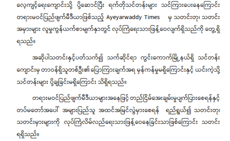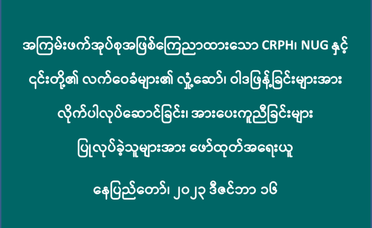 အကြမ်းဖက်အုပ်စုအဖြစ် ကြေညာထားသော CRPH၊ NUG နှင့် ယင်းတို့၏ လက်ဝေခံ အဖွဲ့အစည်းများ၊ ယင်းတို့နှင့် ဆက်နွှယ်နေသော အဖွဲ့အစည်းများ၊ လူပုဂ္ဂိုလ်များသည် နိုင်ငံတော် တည်ငြိမ်အေးချမ်းရေးကို ပျက်ပြားစေရန်နှင့် ပြည်သူလူထုကို အကြောက်တရားများ ဖြစ်ပေါ်စေပြီး အစိုးရယန္တရားများ ပျက်ပြားစေရန် ရည်ရွယ်လျက် လှုံ့ဆော်ခြင်း၊ ဝါဒဖြန့်ခြင်း၊ ခြိမ်းခြောက်ခြင်းများကို လူမှုကွန်ရက်များမှတစ်ဆင့် နည်းမျိုးစုံဖြင့် ပြုလုပ်လျက်ရှိပါသည်။