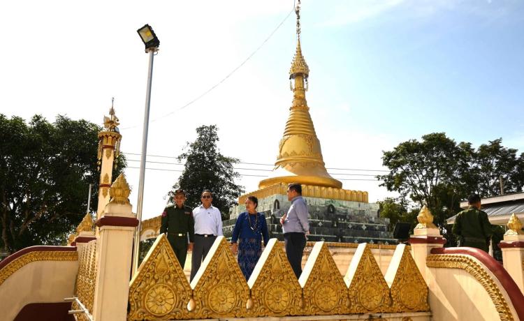 နိုင်ငံတော်စီမံအုပ်ချုပ်ရေးကောင်စီအဖွဲ့ဝင် ဒေါက်တာဘရွှေ သည် ရခိုင်ပြည်နယ်ဝန်ကြီးချုပ် ဦးထိန်လင်း၊ ပြည်နယ်ဝန်ကြီးများ၊ ဌာနဆိုင်ရာတာဝန်ရှိသူများနှင့်အတူ ယနေ့နံနက်ပိုင်းက တပ်မတော် ရဟတ်ယာဉ်ဖြင့် စစ်တွေမြို့မှ ကျောက်တော်၊ မြောက်ဦးနှင့် ကျောက်ဖြူမြို့ နယ်များသို့သွားရောက်ပြီး အဆိုပါမြို့နယ်များ၏ ဖွံ့ဖြိုးတိုးတက်ရေးအတွက် ဒေသခံပြည်သူများ နှင့်တွေ့ဆုံကြကာ ဒေသဖွံ့ဖြိုး ရေးလုပ်ငန်းများအား လှည့်လည်ကြည့်ရှု စစ်ဆေးကြသည်။