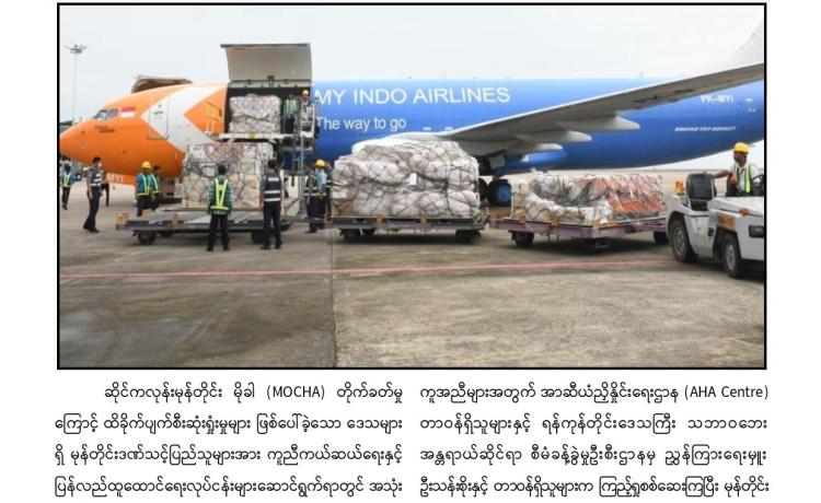 တပ်မတော်(လေ)အနေဖြင့် သဘာဝဘေးဒဏ်သင့်ဒေသများသို့ တပ်မတော်(ကြည်း၊ ရေ၊ လေ)မိသားစုများ၊ စေတနာရှင်အလှူရှင်များက လှူဒါန်းသည့် စားသောက်ဖွယ်ရာများ၊ ကူညီ ထောက်ပံ့ရေးပစ္စည်းများ၊ အမျိုးသားသဘာဝဘေးအန္တရာယ်ဆိုင်ရာ စီမံခန့်ခွဲမှု ကော်မတီက ထောက်ပံ့ပေးအပ်သည့်ပစ္စည်းများကို တပ်မတော်လေယာဉ်၊ ရဟတ်ယာဉ်များဖြင့် ကူညီ ပို့ဆောင်ပေးလျက်ရှိသည်။