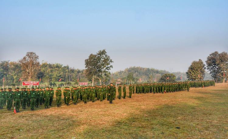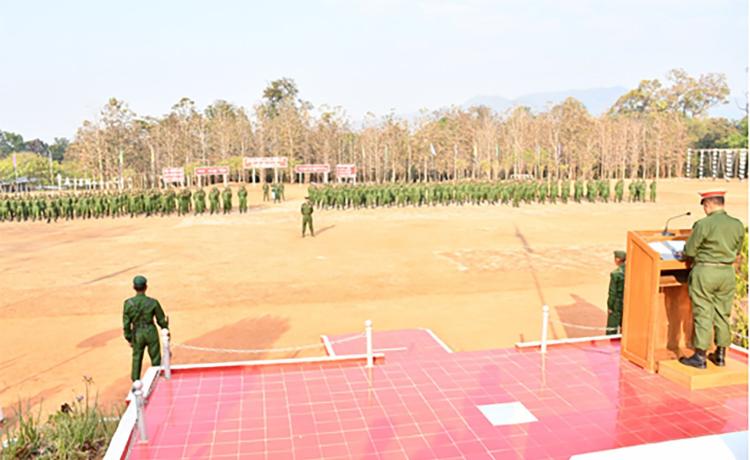 ပြည်သူ့စစ်မှုထမ်းသင်တန်းအမှတ်စဉ်(၂၂)သို့ တက်ရောက်ကြမည့် ရှမ်းပြည်နယ် အတွင်းရှိ နိုင်ငံ့သားကောင်းရတနာများအား ကြိုဆိုပွဲကို ယနေ့နံနက်ပိုင်းတွင် ကျိုင်းတုံမြို့ရှိ နယ်မြေခံသင်တန်းကျောင်း၌ ပြုလုပ်ရာ တြိဂံဒေသတိုင်းစစ်ဌာနချုပ် ဒုတိယတိုင်းမှူး ဗိုလ်မှူးချုပ် ကျော်နိုင်စိုးနှင့် တာဝန်ရှိသူများ၊ အရာရှိ၊ စစ်သည်၊ မိသားစုဝင်များ၊ ပြည်နယ်၊ ခရိုင်၊ မြို့နယ်အဆင့် ဌာနဆိုင်ရာတာဝန်ရှိသူများ၊ မြန်မာ နိုင်ငံရဲတပ်ဖွဲ့ဝင်များ၊ စစ်မှုထမ်းဟောင်းအဖွဲ့ဝင်များနှင့် တိုင်းရင်းသားယဉ်ကျေးမှုအဖွဲ့ များ တက်ရောက်ကြသည်။