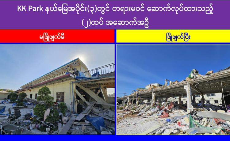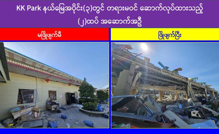 KK Park အပိုင်း(၃) နယ်မြေအတွင်းရှိ အွန်လိုင်းလိမ်လည်မှုနှင့် လောင်းကစားမှုများကျူးလွန်ရာတွင် အသုံးပြုသည့် အဆောက်အအုံ ၇ လုံး ထပ်မံဖြိုချဖျက်ဆီး၊ ရွှေကုက္ကိုလ်နယ်မြေအတွင်း၌ အွန်လိုင်းလိမ်လည်မှုနှင့် လောင်းကစားမှုများ လုပ်ဆောင်ရာတွင် အသုံးပြုခဲ့သည့် အဆောက်အအုံများ ၆၄ လုံးအား ချိတ်ပိတ်သိမ်းဆည်း