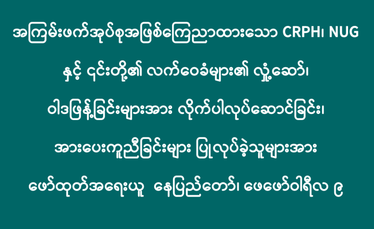 အကြမ်းဖက်အုပ်စုအဖြစ်ကြေညာထားသော CRPH၊ NUG နှင့် ယင်းတို့၏ လက်အောက်ခံ အဖွဲ့အစည်းများ၊ ယင်းတို့နှင့် ဆက်နွှယ်နေသော အဖွဲ့အစည်းများ၊ လူပုဂ္ဂိုလ်များသည် နိုင်ငံတော် တည်ငြိမ်အေးချမ်းရေးကို ပျက်ပြားစေရန်နှင့် ပြည်သူလူထုကို အကြောက်တရားများ ဖြစ်ပေါ်စေပြီး အစိုးရယန္တရားများ ပျက်ပြားစေရန် ရည်ရွယ်လျက် လှုံ့ဆော်ခြင်း၊ ဝါဒဖြန့်ခြင်း၊ ခြိမ်းခြောက်ခြင်းများကို လူမှုကွန်ရက်များမှတစ်ဆင့် နည်းမျိုးစုံဖြင့် ပြုလုပ်လျက်ရှိပါသည်။