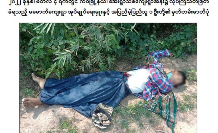 စစ်ကိုင်းတိုင်းဒေသကြီး၊ ကန့်ဘလူမြို့နယ်၌ PDF အမည်ခံအကြမ်းဖက်သမားများက ကျေးရွာအတွင်းသို့ လက်နက်ကြီး/ လက်နက်ငယ်များဖြင့် ပစ်ခတ်၍ မီးရှို့ဖျက်ဆီးမှုကြောင့် လူနေအိမ် ၁၀ လုံးမီးလောင်ပျက်စီးခဲ့ကြောင်း သိရှိရသည်။