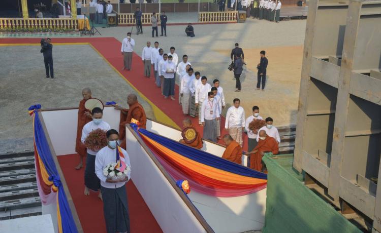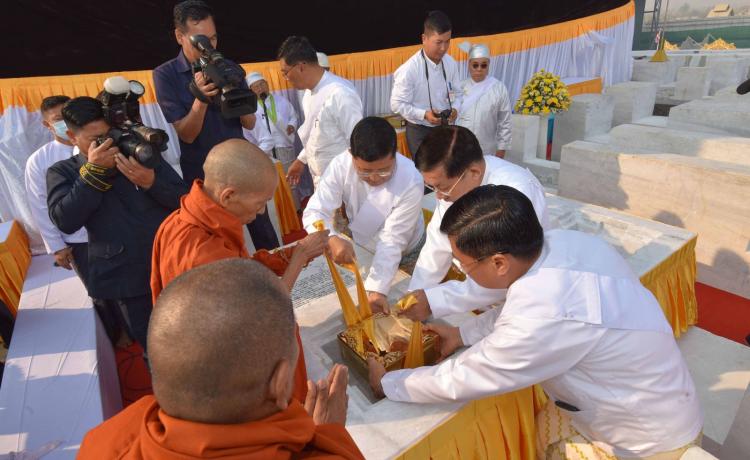 မာရဝိဇယဗုဒ္ဓရုပ်ပွားတော်မြတ်ကြီး ရတနာပလ္လင်တော်ထက် အလယ်ဗဟိုဌာနများတွင် ဦးဆောင်ဘုရားဒါယကာ နိုင်ငံတော်စီမံအုပ်ချုပ်ရေးကောင်စီဥက္ကဋ္ဌ နိုင်ငံတော်ဝန်ကြီးချုပ် ဗိုလ်ချုပ်မှူးကြီး မင်းအောင်လှိုင် အမှူးပြုသည့် ပြည်ထောင်စုသမ္မတမြန်မာနိုင်ငံတော် တစ်ဝန်းလုံးမှ ဌာပနာတော်ကုသိုလ်ရှင်များ လှူဒါန်းထားရှိသော ဌာပနာတော်များသွင်းလှူပူဇော်ခြင်း မဟာမင်္ဂလာအခမ်းအနား ကျင်းပပြုလုပ်