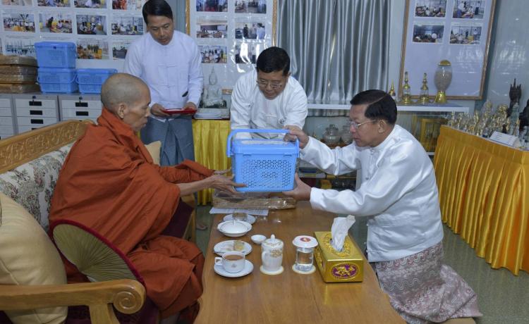 နိုင်ငံတော်စီမံအုပ်ချုပ်ရေးကောင်စီ ဒုတိယဥက္ကဋ္ဌ ဒုတိယဝန်ကြီးချုပ် ဒုတိယဗိုလ်ချုပ်မှူးကြီး စိုးဝင်း ၂၀၂၃ ခုနှစ် သာသနာတော်ဆိုင်ရာဘွဲ့တံဆိပ်တော်များ ဆက်ကပ်ချီးမြှင့်အပ်နှင်းပွဲ ကျင်းပရေး နာယကအဖွဲ့နှင့် ဦးစီးကော်မတီ လုပ်ငန်းညှိနှိုင်းအစည်းအဝေးသို့ တက်ရောက်အမှာစကားပြောကြား