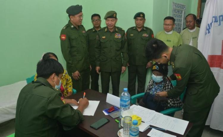 ဧရာဝတီတိုင်းဒေသကြီး၊ ဧရာဝတီမြစ်ကြောင်းတစ်လျှောက်ရှိ မြစ်ဝကျွန်းပေါ် ကျေးရွာများမှ ဒေသခံပြည်သူများအား ကျန်းမာရေးစောင့်ရှောက်မှုလုပ်ငန်းများ ဆောင်ရွက်ပေးရန်ရောက်ရှိနေသော တပ်မတော်နယ်လှည့်အထူးကုဆေးအဖွဲ့မှ ပါရဂူ များ၊ ဆေးမှူးများနှင့် သူနာပြုများပါဝင်သော တပ်မတော်မြစ်တွင်းသွား ဆေးရုံ ရေယာဉ်(ရွှေပုဇွန်)နှင့် မြစ်ရေယာဉ်(စကု)တို့သည့် ယနေ့တွင် ဖျာပုံမြို့နယ်နှင့် ပတ်ဝန်းကျင်ကျေးရွာများမှ ဒေသခံပြည်သူ ၅၂၁ ဦးအား ၎င်းမြို့ရှိ ခရိုင်စိုက်ပျိုးရေး ဦးစီးဌာန၌ အခြေပြု၍ ကျန်းမာရေးစောင့်ရှောက်မှုလုပ်ငန်းများ ဆက်လက်ဆောင်ရွက် ပေးသည်။