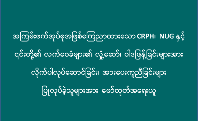 အကြမ်းဖက်အုပ်စုအဖြစ်ကြေညာထားသော CRPH၊ NUG နှင့် ယင်းတို့၏ လက်အောက်ခံ အဖွဲ့အစည်းများ၊ ယင်းတို့နှင့် ဆက်နွှယ်နေသော အဖွဲ့အစည်းများ၊ လူပုဂ္ဂိုလ်များသည် နိုင်ငံတော် တည်ငြိမ်အေးချမ်းရေးကို ပျက်ပြားစေရန်နှင့် ပြည်သူလူထုကို အကြောက်တရားများ ဖြစ်ပေါ်စေပြီး အစိုးရယန္တရားများ ပျက်ပြားစေရန် ရည်ရွယ်လျက် လှုံ့ဆော်ခြင်း၊ ဝါဒဖြန့်ခြင်း၊ ခြိမ်းခြောက်ခြင်းများကို လူမှုကွန်ရက်များမှတစ်ဆင့် နည်းမျိုးစုံဖြင့် ပြုလုပ်လျက်ရှိပါသည်။