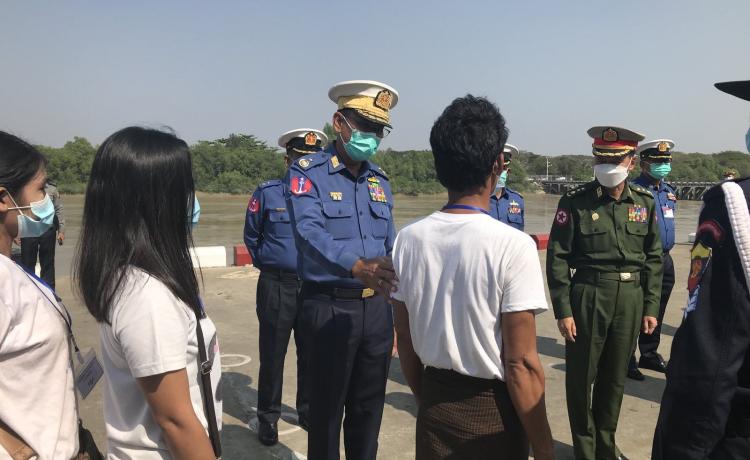 နိုင်ငံတော်စီမံအုပ်ချုပ်ရေးကောင်စီဥက္ကဌ တပ်မတော်ကာကွယ်ရေးဦးစီးချုပ် ဗိုလ်ချုပ်မှူးကြီး မင်းအောင်လှိုင်၏ လမ်းညွှန်မှာကြားချက်အရ ထိုင်းနိုင်ငံတွင် ရောက် ရှိနေပြီး အကြောင်းအမျိုးမျိုးကြောင့် မြန်မာနိုင်ငံသို့ ပြန်လာရန်အခက်အခဲကြုံတွေ့ ခဲ့ရသော နေရပ်ပြန်မြန်မာနိုင်ငံသား ၆၇၉ ဦးတို့အနက် ကော့သောင်းမြို့မှ မိုင်ပေါင်း ၄၅၅ မိုင်ခန့်ကွာဝေးသည့် ရန်ကုန်တိုင်းဒေသကြီးမှ နေရပ်ပြန်မြန်မာနိုင်ငံသား ၁၁၈ ဦး အား မြန်မာ့တပ်မတော်(ရေ)မှ စစ်ရေယာဉ်(ကျန်စစ်သား)ဖြင့် ခေါ်ဆောင်လာခဲ့ရာ ယနေ့မွန်းလွဲပိုင်း ၁၄၀၀ ချိန်တွင် ရန်ကုန်မြို့၊ အမှတ်(၃) ရေတပ်ဆိပ်ခံတံတား (သီလဝါ)သို့ ရောက်ရှိခဲ့ပါသည်။