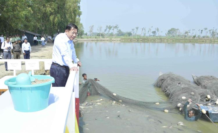 နိုင်ငံတော်စီမံအုပ်ချုပ်ရေးကောင်စီဥက္ကဋ္ဌ နိုင်ငံတော်ဝန်ကြီးချုပ် ဗိုလ်ချုပ်မှူးကြီး မင်းအောင်လှိုင် သည် ယနေ့နံနက်ပိုင်းတွင် ကောင်စီတွဲဖက်အတွင်းရေးမှူး ဒုတိယ ဗိုလ်ချုပ်ကြီး ရဲဝင်းဦး၊ ကောင်စီဝင် ဗိုလ်ချုပ်ကြီး တင်အောင်စန်း၊ ပြည်ထောင်စု ဝန်ကြီးများ၊ ရန်ကုန်တိုင်းဒေသကြီး ဝန်ကြီးချုပ် ဦးစိုးသိန်း၊ ကာကွယ်ရေးဦးစီးချုပ်ရုံးမှ တပ်မတော်အရာရှိကြီးများ၊ ရန်ကုန်တိုင်းစစ်ဌာနချုပ်တိုင်းမှူး ဗိုလ်ချုပ် ညွန့်ဝင်းဆွေ၊ မြို့တော်ဝန်နှင့် တာဝန်ရှိသူများ လိုက်ပါ၍ ရန်ကုန်တိုင်းဒေသကြီး၊ တွံတေးမြို့နယ်ရှိ ရွှေမုယင်းဒေသအတွင်း ငါးမွေးမြူရေးလုပ်ငန်းဆောင်ရွက်ထားရှိမှု အခြေအနေများနှင့် ငါးလုပ်ငန်းသိပ္ပံ(တွံတေး)သို့ သွားရောက်ကြည့်ရှုစစ်ဆေးသည်။