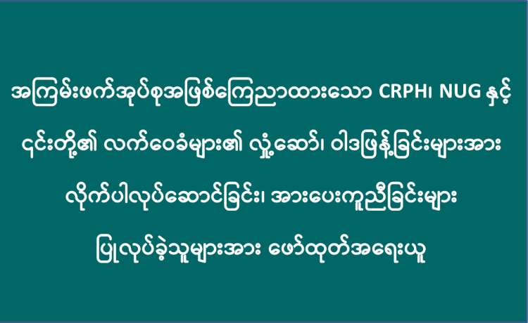 အကြမ်းဖက်အုပ်စုအဖြစ်ကြေညာထားသော CRPH၊ NUG နှင့် ယင်းတို့၏ လက်အောက်ခံ အဖွဲ့အစည်းများ၊ ယင်းတို့နှင့် ဆက်နွှယ်နေသော အဖွဲ့အစည်းများ၊ လူပုဂ္ဂိုလ်များသည် နိုင်ငံတော် တည်ငြိမ်အေးချမ်းရေးကို ပျက်ပြားစေရန်နှင့် ပြည်သူလူထုကို အကြောက်တရားများ ဖြစ်ပေါ်စေပြီး အစိုးရယန္တရားများ ပျက်ပြားစေရန် ရည်ရွယ်လျက် လှုံ့ဆော်ခြင်း၊ ဝါဒဖြန့်ခြင်း၊ ခြိမ်းခြောက်ခြင်းများကို လူမှုကွန်ရက်များမှတစ်ဆင့် နည်းမျိုးစုံဖြင့် ပြုလုပ်လျက်ရှိပါသည်။