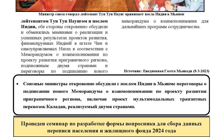 (၇၈)နှစ်မြောက် တပ်မတော်နေ့ကျင်းပရေးဦးစီးကော်မတီ စတုတ္ထအကြိမ် လုပ်ငန်းညှိနှိုင်းအစည်းအဝေးကို ယနေ့မွန်းလွဲပိုင်းတွင် နေပြည်တော်၊ စစ်ကြောရေးနှင့် တည်းခိုရေးစခန်းရှိ ဆင်ဖြူရှင်ခန်းမ၌ ပြုလုပ်သည်။