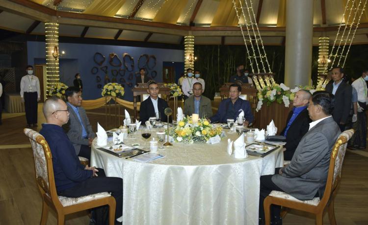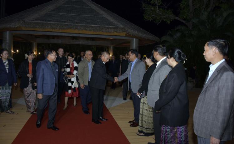 နိုင်ငံတော်စီမံအုပ်ချုပ်ရေးကောင်စီဥက္ကဋ္ဌ တပ်မတော်ကာကွယ်ရေးဦးစီးချုပ် ဗိုလ်ချုပ်မှူးကြီး မင်းအောင်လှိုင် 8th HLC အစည်းအဝေးသို့ တက်ရောက်ရန် ရောက်ရှိနေသည့် ထိုင်းဘုရင့်တပ်မတော်ကာကွယ်ရေးဦးစီးချုပ်အား ညစာစားပွဲဖြင့် ကြိုဆိုတည်ခင်းဧည့်ခံ