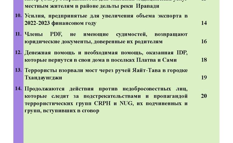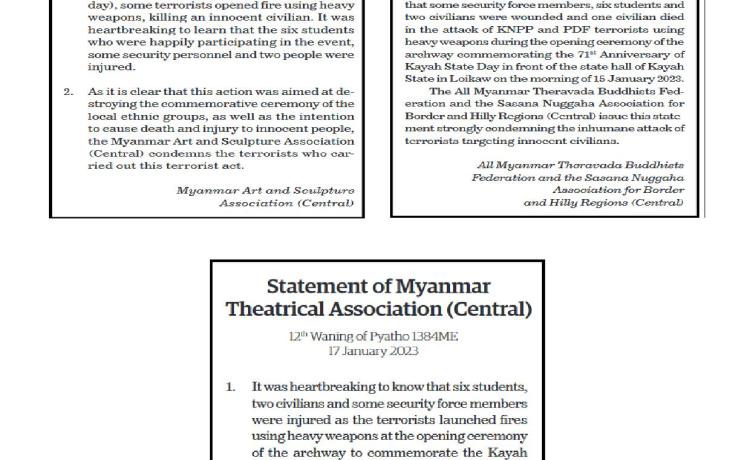 အကြမ်းဖက်အုပ်စုအဖြစ်ကြေညာထားသော CRPH၊ NUG နှင့် ယင်းတို့၏ လက်အောက်ခံ အဖွဲ့အစည်းများ၊ ယင်းတို့နှင့် ဆက်နွှယ်နေသော အဖွဲ့အစည်းများ၊ လူပုဂ္ဂိုလ်များသည် နိုင်ငံတော် တည်ငြိမ်အေးချမ်းရေးကို ပျက်ပြားစေရန်နှင့် ပြည်သူလူထုကို အကြောက်တရားများ ဖြစ်ပေါ်စေပြီး အစိုးရယန္တရားများ ပျက်ပြားစေရန် ရည်ရွယ်လျက် လှုံ့ဆော်ခြင်း၊ ဝါဒဖြန့်ခြင်း၊ ခြိမ်းခြောက်ခြင်းများကို လူမှုကွန်ရက်များမှတစ်ဆင့် နည်းမျိုးစုံဖြင့် ပြုလုပ်လျက်ရှိပါသည်။