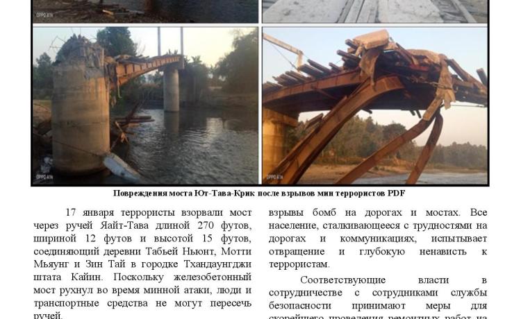 မကွေးတိုင်းဒေသကြီး၊ မြိုင်မြို့နယ်၌ အကြမ်းဖက်သမားများက ကျောက်ဖူးကျေးရွာအနီးရှိ ကျောက်ဖူးမီးရထားဘူတာအား မိုင်းထောင်ဖောက်ခွဲဖျက်ဆီးခဲ့ကြောင်း သိရသည်။