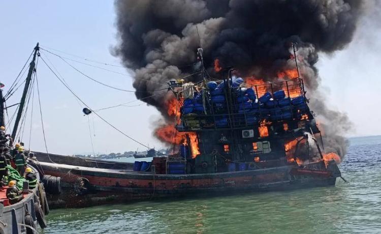 တနင်္သာရီတိုင်းဒေသကြီး၊ မြိတ်မြို့အနီး မြန်မာ့ပင်လယ်ပြင်အတွင်း လုံခြုံရေး ဆောင်ရွက်နေသော တပ်မတော်(ရေ)မှ တပ်ဖွဲ့ဝင်များသည် မြိတ်မြို့၏ အနောက် မြောက်ဘက် ရေမိုင် ၀ ဒသမ ၅ မိုင်အနီး ငါးဖမ်းဝါးလတ်လှေတစ်စီး မီးလောင် နေကြောင်း သတင်းအရ ၂၀၂၂ ခုနှစ်၊ ဒီဇင်ဘာ ၃၁ ရက် ၁၂ နာရီခန့်တွင် သွားရောက် ရှာဖွေစိစစ်ခဲ့ရာ သုခမောင်(၇)အမည်ရှိ ငါးဖမ်းဝါးလတ်လှေ ၁ စီး မီးလောင်နေသည်ကို တွေ့ရှိခဲ့သဖြင့် မြန်မာနိုင်ငံရေကြောင်းရဲတပ်ဖွဲ့မှ ရေယာဉ်များ၊ မြန်မာနိုင်ငံမီးသတ် တပ်ဖွဲ့ဝင်များ တင်ဆောင်ထားသည့် အရပ်ဘက်ရေယာဉ်များနှင့်အတူ ဝိုင်းဝန်းမီးငြှိမ်း သတ်ခဲ့ပြီး လှေပေါ်ပါ လှေသား ၃ ဦးမှာ မီးလောင်ဒဏ်ရာများရရှိခဲ့သဖြင့် ဆေးကုသမှု ခံယူရန်အတွက် မြိတ်မြို့၊ ပြည်သူ့ဆေးရုံကြီးသို့ ပို့ဆောင်ပေးခဲ့ကြောင်း သတင်းရရှိ သည်။