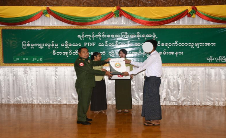နိုင်ငံတော်အစိုးရသည် PDF အပါအဝင် အဖွဲ့အစည်းအမျိုး မျိုးအမည်ခံ၍ လက်နက်ကိုင်ဆန့်ကျင်လျက်ရှိသည့်် အဖွဲ့အစည်းများအတွင်း ရောက်ရှိနေသူများအား ဉပဒေဘောင်အတွင်းသို့ ပြန်လည်ဝင်ရောက်ရန် ဖိတ်ခေါ်၍ ဉပဒေဘောင်အတွင်းသို့ ပြန်လည်ဝင်ရောက်လာကြသူများကိုလည်း လိုအပ်သည့် ကူညီပံ့ပိုးမှုများ ဆောင်ရွက် ပေးလျက်ရှိရာ နိုင်ငံတော်နှင့် တပ်မတော်၏ ငြိမ်းချမ်းရေးလုပ်ငန်းစဉ်များကို နားလည် သဘောပေါက်လာသည့် PDF အမည်ခံအဖွဲ့မှ အဖွဲ့ဝင် အမျိုးသား ၁၂ ဦးနှင့် အမျိုးသမီး ၃ ဦးတို့သည် ယနေ့တွင် ဉပဒေဘောင်အတွင်းသို့ ထပ်မံဝင်ရောက်လာကြသည်။