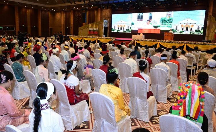 ပြည်ထောင်စုသမ္မတမြန်မာနိုင်ငံတော်ယာယီသမ္မတ နိုင်ငံတော်လုံခြုံရေးနှင့် အေးချမ်းသာယာရေးကော်မရှင်ဥက္ကဋ္ဌ ဗိုလ်ချုပ်မှူးကြီး မင်းအောင်လှိုင် ပြည်ထောင်စုတိုင်းရင်းသား လူမျိုးများဖွံ့ဖြိုးရေးတက္ကသိုလ်ပညာရေးဘွဲ့ ၅ နှစ်သင်တန်း အမှတ်စဉ်(၇)မှကျောင်းသား၊ ကျောင်းသူများကို တွေ့ဆုံအမှာစကားပြောကြား